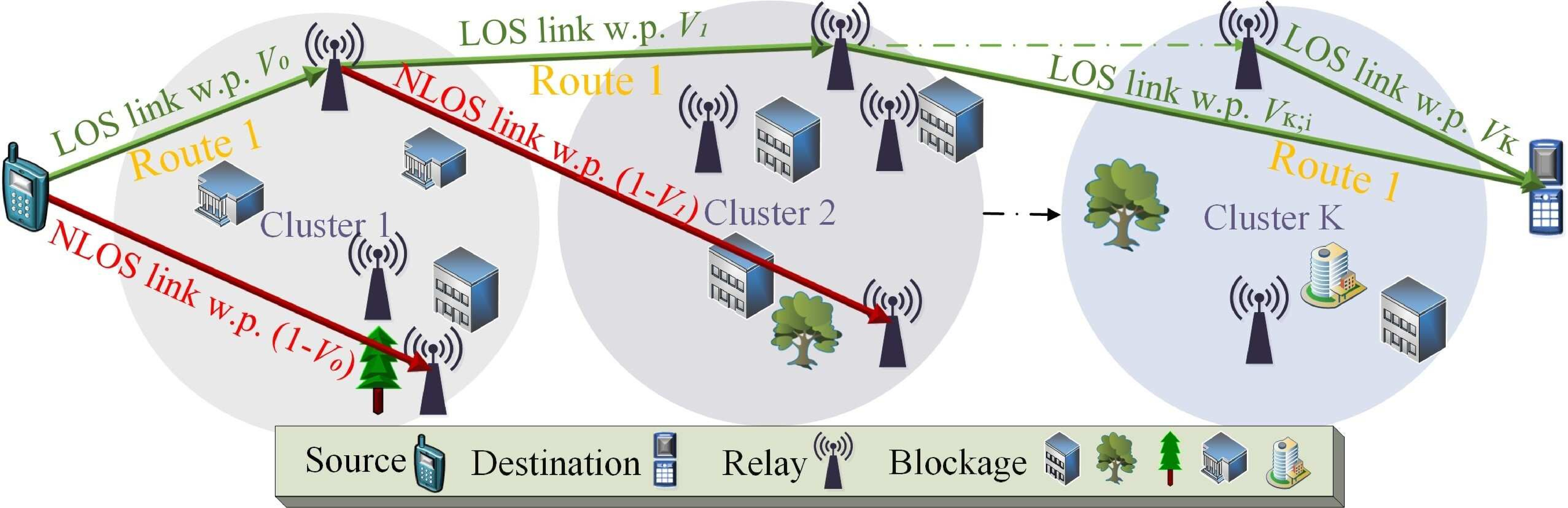 The explosive growth of mobile data traffic over the past few years has driven the demand for significantly higher capacity and data-rates in wireless communication networks. In general, previous generations of communication networks have used the microwaves (µWaves) band. However, these waves cannot meet this demand because of the bandwidth limitations in this range of frequencies. One of the promising technologies to solve this problem is the use of the millimeter wave (mmWave), whose frequency is in the range of 30 to 300 GHz. This technology provides Giga-Hertz bandwidth to the network and thanks to this wide range, it is possible to download an Ultra HD movie in less than a few seconds. These waves offer many merits for next-generation communications, including high bandwidth, high data rate, high security, re duced antenna size and weight, reduced interference, and spectrum reuse [1]. Because of the short wavelength of these waves (which is 1–10 mm), the mmWave communications suffer from certain limitations such as being prone to shadow ing, experiencing considerable attenuation especially at higher frequencies, and having limited penetration power. An im portant drawback is their susceptibility to obstructions, which restricts their effective range to short distances [1].